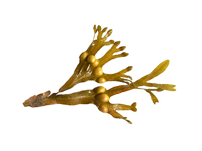 Bladderwrack (Fucus vesiculosis) is a wild-harvested, edible brown seaweed grown along the coastline of the cold, pristine North Atlantic ocean. The word Fucus is thought to be from the Greek work phykos, meaning algae, and the word vesiculosus is from the Latin word vesicula, referring to blisters. These ‘blisters’ are the small air bladders in the seaweed that help float the submerged fronds up to the water surface for photosynthesis.